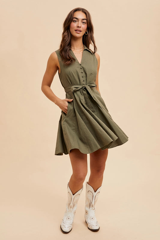 Lapel Flare Belted Dress